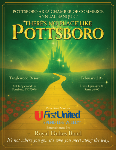 The Pottsboro Area Chamber of Commerce invites you to an unforgettable evening as we celebrate another successful year with our Annual Awards Banquet.